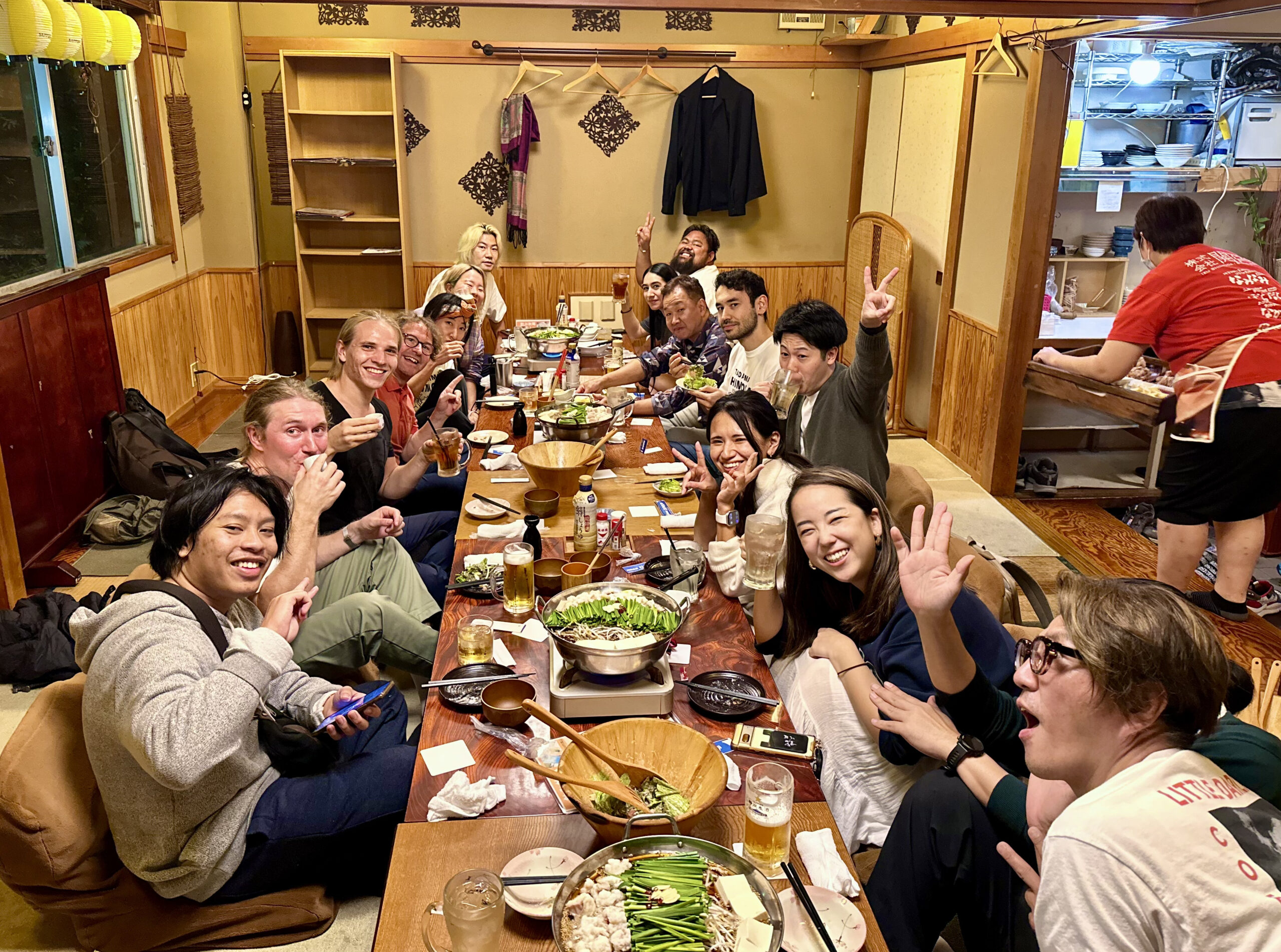 一日の終わりに集まり、落ち着いた雰囲気で楽しむ夕食会です。食事をしながらお互いの活動や旅のエピソードをシェアし、より深い交流が生まれます。